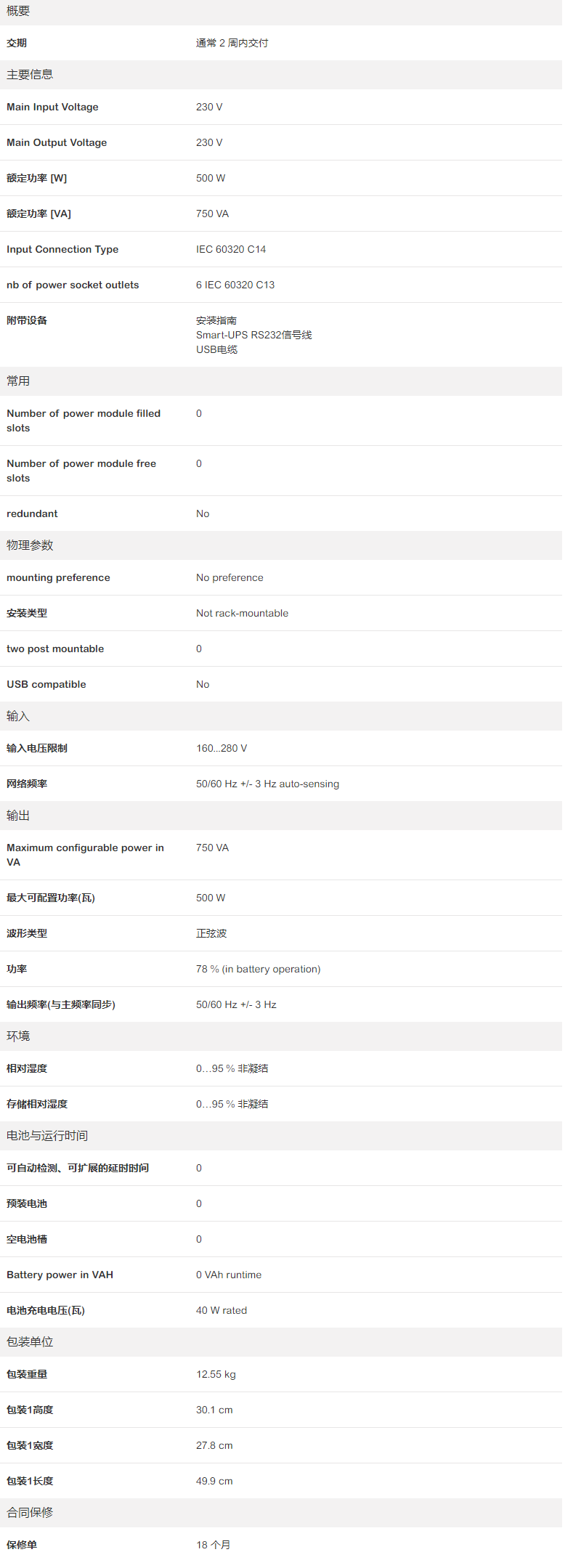 Smart-UPS ,SMC750I-CH规格